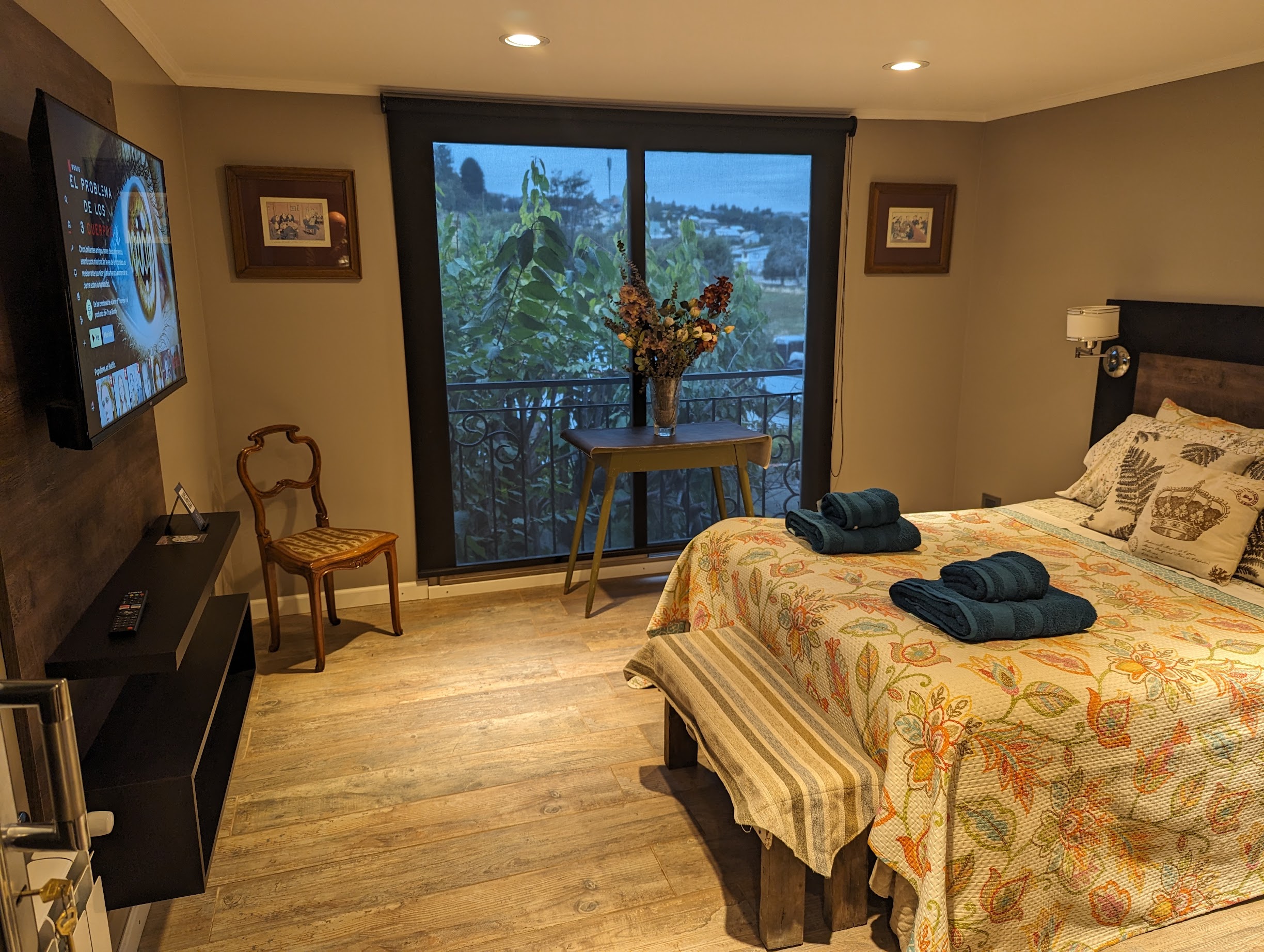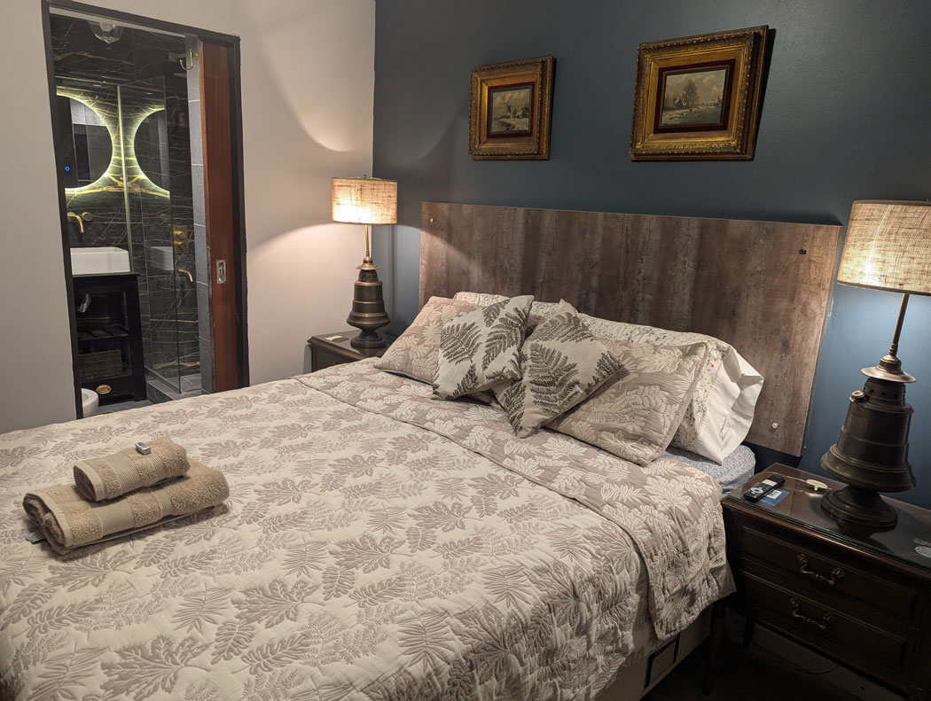Amplia y luminosa, con cama queen, baño privado y detalles de diseño que combinan estilo y confort. Ideal para parejas que buscan privacidad y calidez, con vistas al jardín.